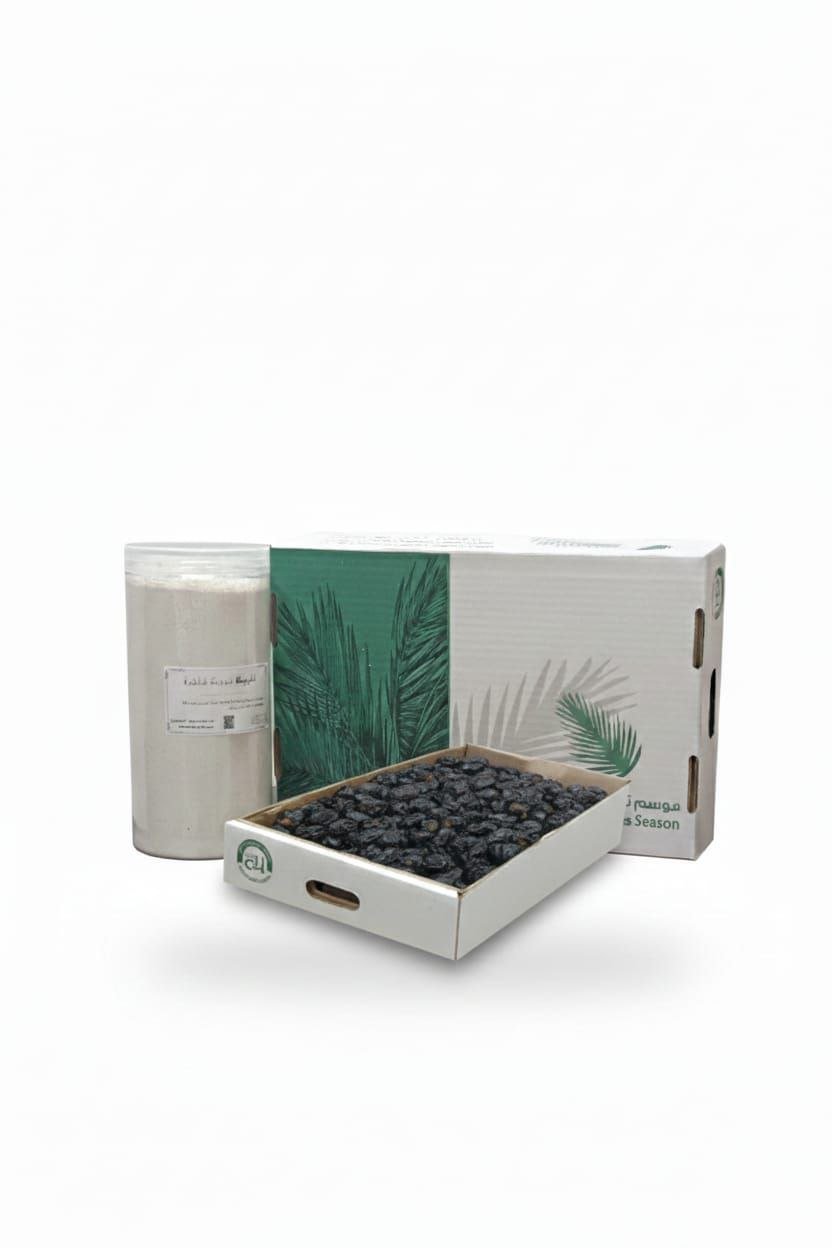 صندوق عجوة 3 كيلو مع عبوة تلبينة 1 كيلو
